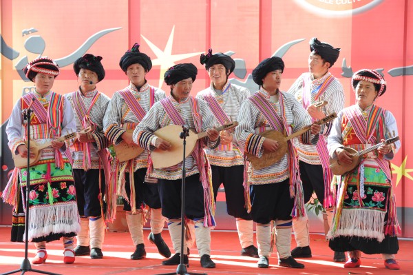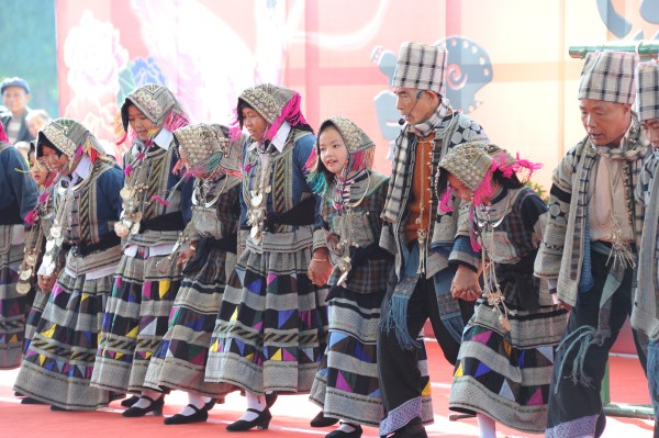 分布在滇东南的彝族"白倮"支系,至今保持着具备极高工艺价值和审美价值的传统着装,服装袖子、衣襟等处绣满了各式各样的花饰,有荞菜花、龙牙花、太阳花、瓜米花等,加之颈上所挂的镰刀、锄头、插刀等一些象征日常生产生活的银质饰件,其所涵盖的丰富而深厚的文化寓义,是白倮人民族心理意识和传统习俗的深刻反映。从白倮人常服的形制特色,仪式服和年龄服的文化含义和社会功能等方面可知,白倮人作为古滇国民族的后裔,崇龙、崇铜鼓的图腾信仰的遗俗至今仍深刻映照在古朴的服饰文化中。漂亮的服饰和特有的民族文化内涵,让在场的观众禁不住连连称赞,纷纷掏出手机、相机拍照留念,有的人还特意在表演结束后向演员们进一步做了咨询,希望有机会也能买到这样的民族服饰。
