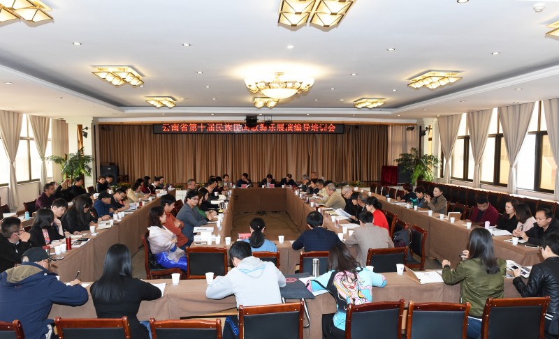 为做好云南省第十届民族民间歌舞乐展演筹备工作,保证展演顺利进行,3月20日至21日,云南省第十届民族民间歌舞乐展演编导培训会在昆明召开。省文化厅副厅长杨德聪、省民宗委沙云生处长等相关领导,各州(市)文化局分管领导、文化馆(非遗中心)负责人、编导,及省非遗保护相关专家共93人参加会议。