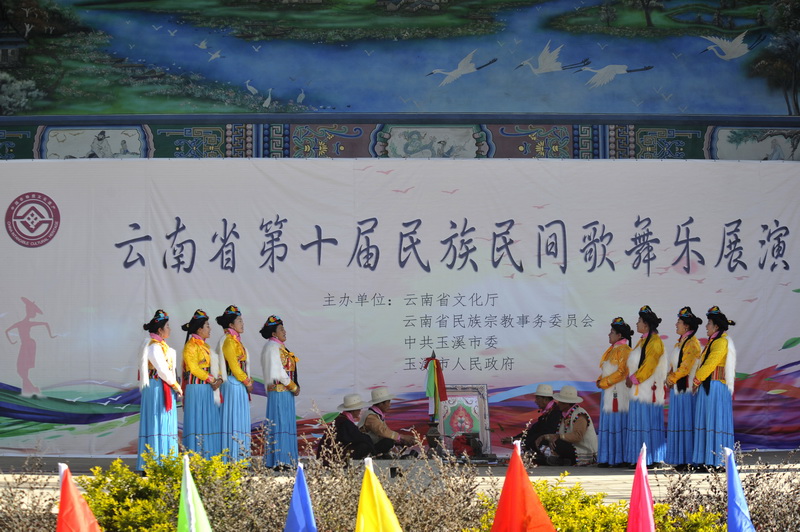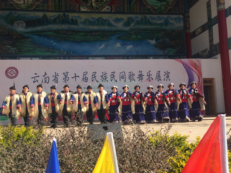 12月11日是个万里无云的好日子,我们《纳西族热美蹉》的演员一行16人,按照约定,8点钟就准时来到电影城集中乘车。一来到车旁,热情的司机先生就投来一个和善的微笑,使我的心情格外舒畅,同行的还有来自宁蒗的演员们。我们将代表丽江市参加12月11日至16日在玉溪举行的云南省第十届民族民间歌舞乐展演。这次展演以“展示民族艺术风采 弘扬优秀传统文化”为主题,由省文化厅、省民族宗教事务委员会、中共玉溪市委、玉溪市人民政府共同主办,省非物质文化遗产保护中心、玉溪市文化广播电视局、玉溪市民族宗教事务局承办。