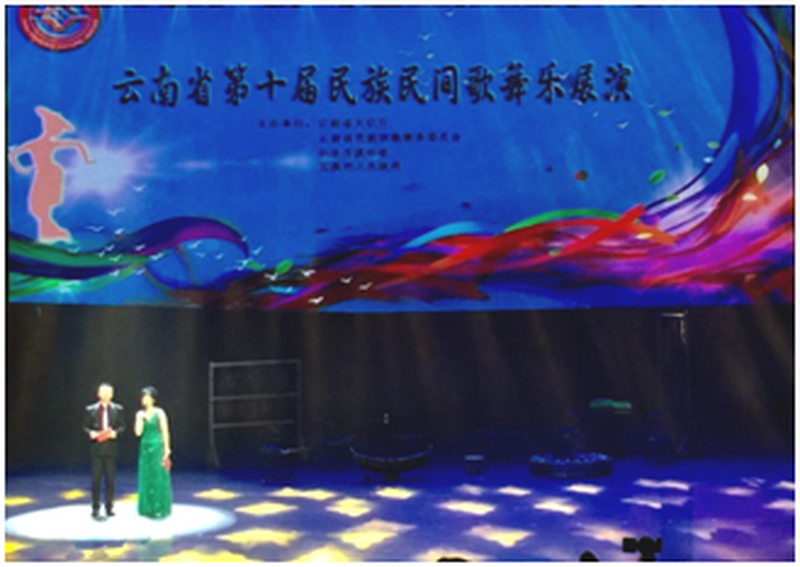 沐浴着党的十九大的强劲春风,在激荡人心的增强文化自觉与文化自信的壮阔励志声里,浸漫着社会热切期望氛围的云南省第十届民族民间歌舞乐展演以新姿新容于2017年12月11日至16日在玉溪聂耳大剧院启开大幕,精彩呈现在全省全国各族人民面前。展演似过佳节,如赶盛会,舞台艺光灼闪,节目五色交辉,来自全省16个州市代表队的22个民族的千余名演员,以庄严、自豪、喜悦的心情和虚心交流学习的态度,带着精心挑选、编排、创作的乡土与民族特色浓釅、艺术风格殊新、表演水平亮眼的节目依次登台展示,显现出一派绚烂缤纷的丰收景象,令人欣喜不尽。展演获得预期成功!