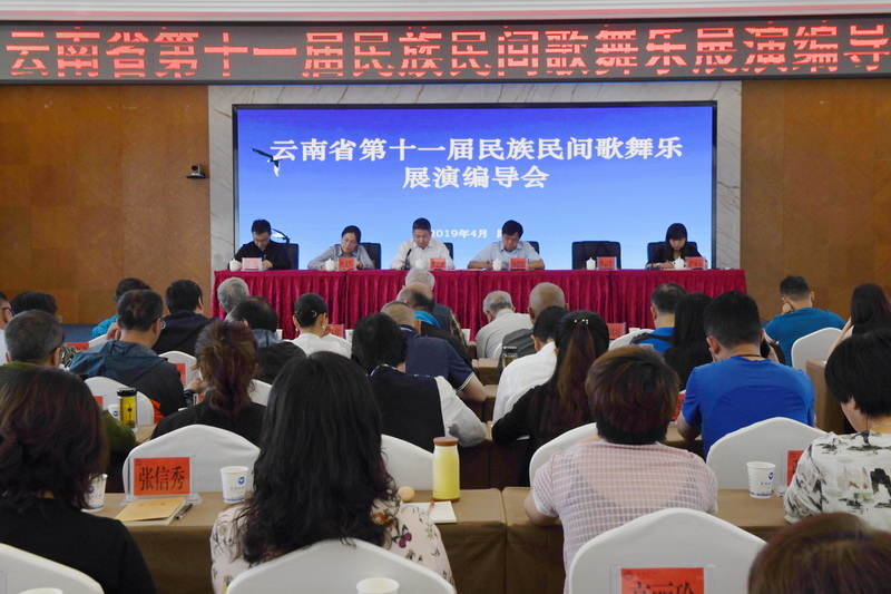 为做好云南省第十一届民族民间歌舞乐展演筹备工作,保证展演顺利进行,4月29日至30日,云南省第十一届民族民间歌舞乐展演编导会在昆明召开。省文化和旅游厅党组成员、副厅长,省文物局局长杨德聪、省民族宗教事务委员会党组成员、副主任李正洪等相关领导,省文化和旅游厅非遗处、省民族宗教事务委员会文化宣传处、省非遗保护中心相关领导,以及各州(市)文化和旅游局分管领导、文化馆(非遗中心)负责人、编导,省非遗保护相关专家约110人参加会议。