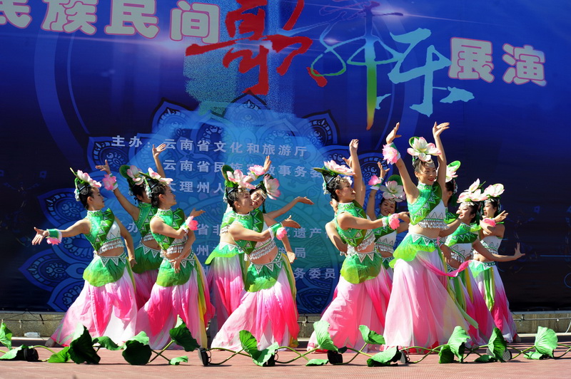 来自玉溪市,曲靖市,红河州,普洱市,德宏州五个代表队约160多人,为大理市群众带去了《跳笙》《牛铃声声》《荷田风韵》《数梯田》《勒尺小调》《祭柏神》《吹响鱼鳞跳起铓》等12个传统和创新节目,获得了观众的声声赞叹和阵阵掌声。 广场上尽管没有华丽的灯光舞美,观众们的热情却将演出一次次推向高潮。