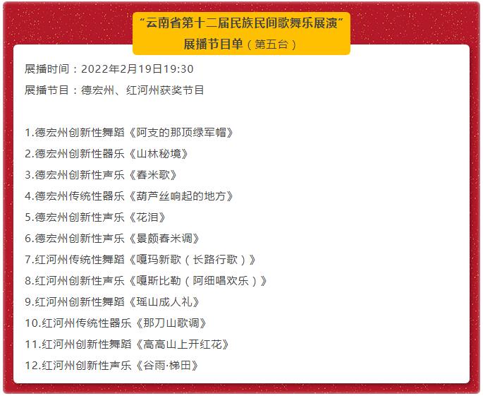 云南省第十二届民族民间歌舞乐展演节目展播(第五台)预告——德宏州、红河州获奖节目