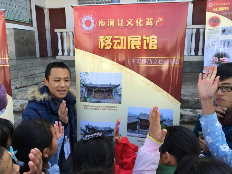 文化遗产移动展馆展示内容涵盖文物和非物质文化遗产两大类,文物展馆包括不可移动文物和可移动文物,展出南涧县具有代表性文物52件;非物质文化遗产展馆从非遗四级项目(国家级、省级、州级、县级)和传承人群两大方面进行展示。移动展馆生动明朗地展示了我县的文化遗产全貌,令观者一目了然,在文化遗产移动展馆里,人们可以读到了南涧厚重的历史和灿烂的人文。从观众或凝眸沉思、或会心一笑的表情里,我们看到的是洋溢在人们脸上的民族自豪感和民族自信心。