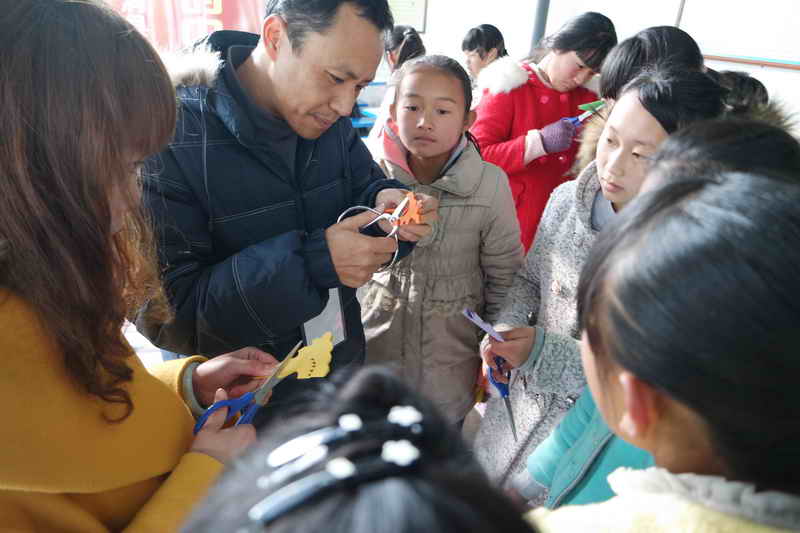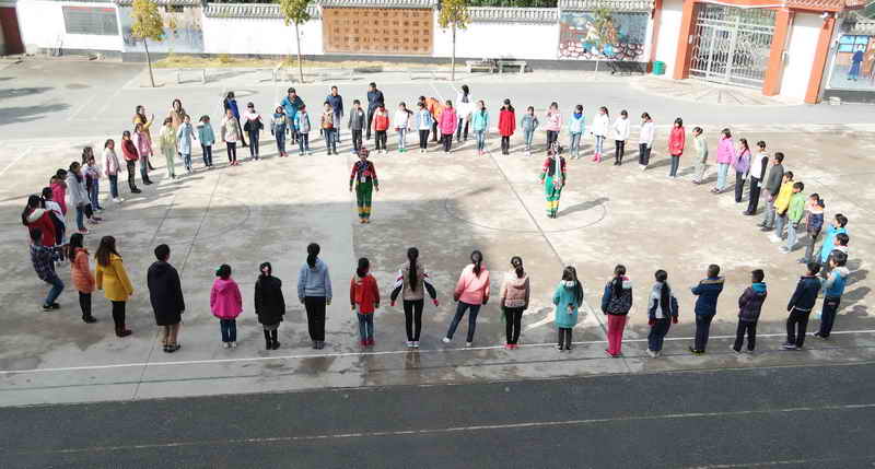 此次文化遗产移动展馆进拥翠小学展览中,我们还创新地将非遗项目——剪纸、山歌、打歌活态的展示在师生面前,并和师生们进行山歌和打歌的互动节目,唱山歌声、打歌的脚步声、笑声活跃了拥翠小学整个校园。