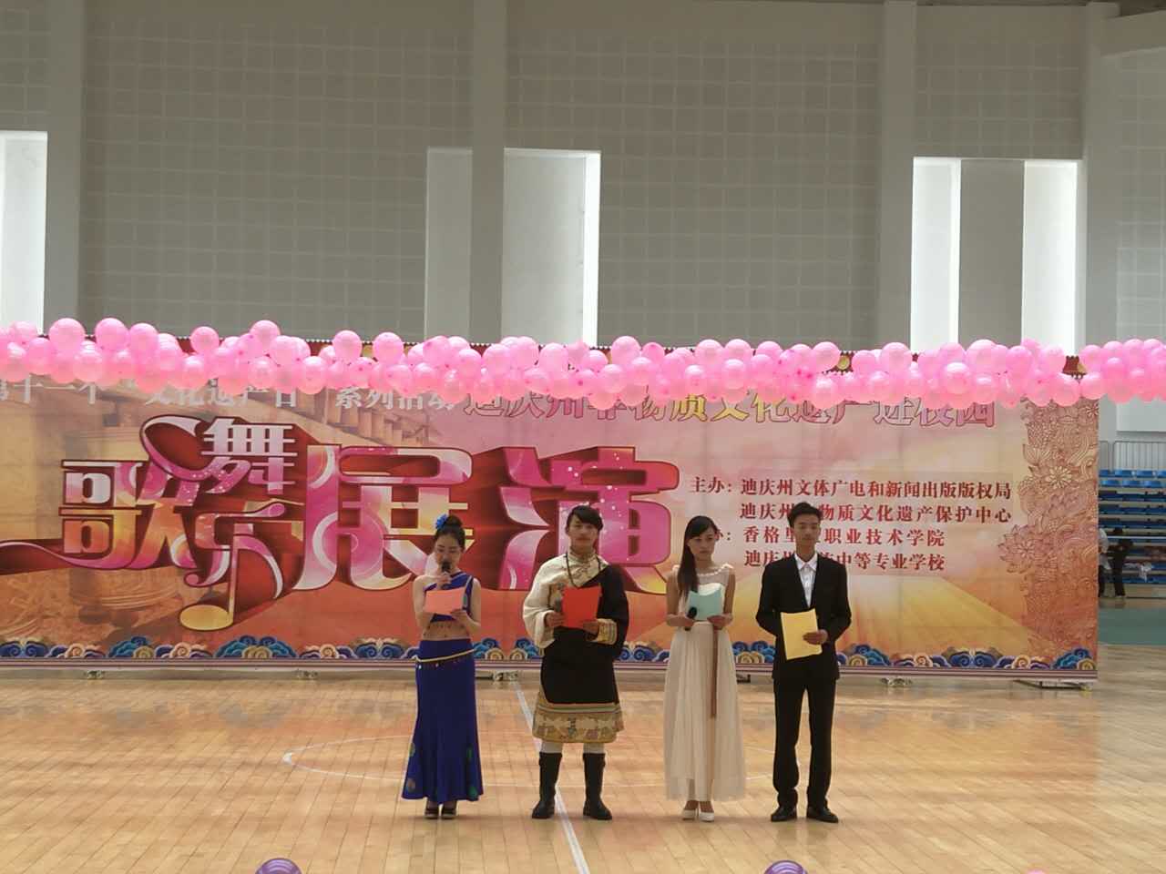 为弘扬优秀民间传统文化,积极探索实践中专学生参与保护非物质文化遗产的方式和途径,促进非物质文化遗产融入学校的教育教学,同时也为了进一步增强学生对非物质文化遗产保护的意识,丰富校园文化,在全国第十一个“文化遗产日”之际,迪庆州非物质文化遗产保护中心联合香格里拉职业技术学院、迪庆州民族中等专业学校举办2016年“非物质文化遗产进校园”文艺展演。本次展演以“保护非物质文化遗产,守护精神家园,活跃学生文化生活,建设文明和谐校园”主题,以活化原生态展示展演为主要内容,展示民专学生所了解的丰富多彩的非物质文化遗产资源。