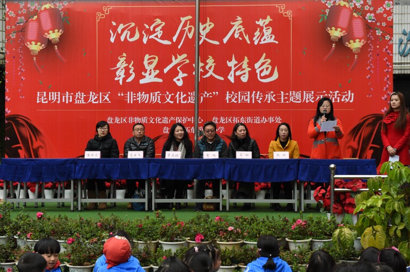 2016年12月30日,由盘龙区非物质文化遗产保护中心、盘龙区拓东街道办事处、盘龙区拓东第二小学联合举办的“昆明市盘龙区非物质文化遗产校园传承主题展示活动”亮相拓东二小。云南省文化厅非遗处、省非遗保护中心,昆明市非遗保护中心,盘龙区文体局、教育局、非遗中心的相关领导和嘉宾应邀出席活动。
