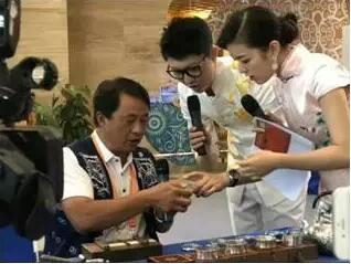 图8 范木昌在展销会上向主持人介绍银走乌金工艺