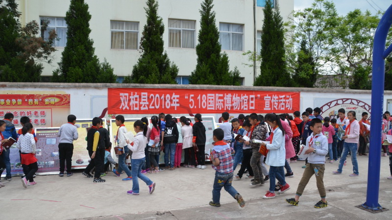 双柏县文化馆此次‘双柏县2018年“文化和自然遗产日”非物质文化遗产宣传活动’和‘双柏县2018年“5、18国际博物馆日”宣传活动’走进妥甸镇中心小学活动共带去了制作精美,图文并茂的双柏县非物质文化遗产、文物展板30余块,妥甸镇中心小学近600余人师生观看了展览,同学们兴致勃勃的翻看宣传资料和画册,通过此次展览让同学们对我县非物质文化遗产保护传承和文物情况有了一个初步的了解,让他们对双柏县的民族文化有了一个简单的认识,对培养孩子们从小就“热爱祖国、热爱家乡”的爱国情感起到了积极的作用。