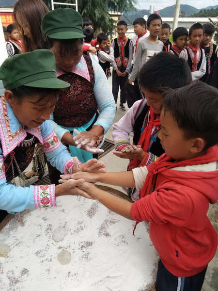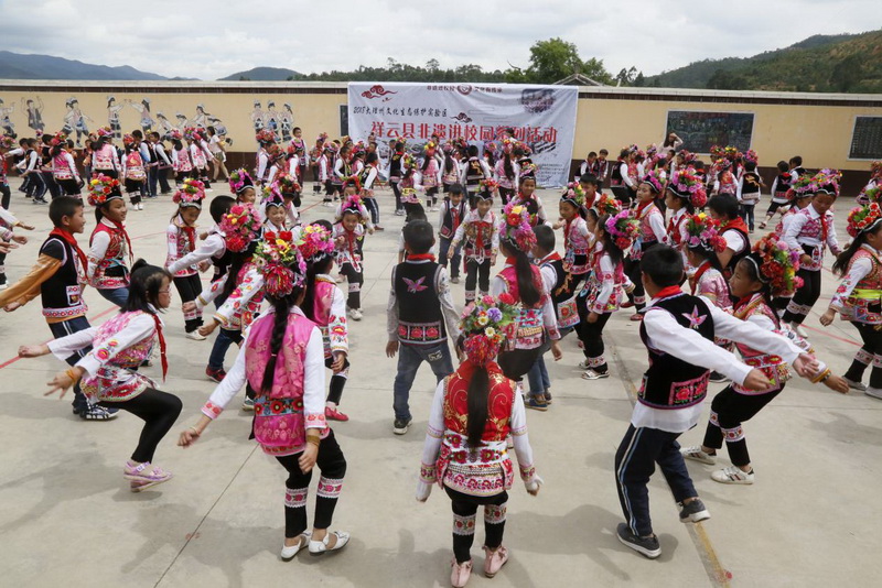 点面结合,丰富群众文化。此次活动以省级非遗保护名录“自羌朗村彝族传统文化生态保护区”为背景,依托国家级少数民族特色村寨自羌朗波罗村丰富多彩的民族传统文化及一批非遗项目传承人,利用校园的特殊优势,与米甸镇自羌朗完小搭建全年常态化教学模式,进一步丰富了学校美育课程资源,丰富了艺术教育形式和内容。同时,采用“非遗”讲堂、互动表演、活态展示、带徒授艺等方式,将非遗传承带入学校的“课内”、“课外”,让孩子们“学中做,做中学”,形成自觉保护非遗的意识,激发孩子们对民族优秀传统文化的热爱之情,使学校成为传续中华文化和“非遗”保护传承的示范基地。