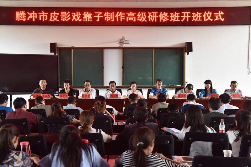 7月16日下午,培训班在朝晖楼多功能报告厅举行了简短的开班仪式。腾冲市文广局副局长段赟樱、市教育局基教股股长许守达、市文化馆馆长段应宗、市文广局社文股股长路进学,皮影戏国家级传承人刘永周、省级传承人刘安逵、保山市级传承人刘安平及市文化馆相关工作人员、全体参训学员参加了开班仪式。仪式由市文化馆支部书记陆国民主持。