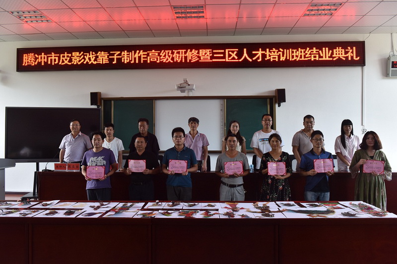 7月16日至22日,2018年腾冲皮影靠子制作高级研修班在腾八中举行,来自全市18个乡镇中、小学及各完(职)中的美术教师共56人参加了培训。