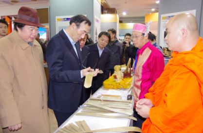 全国人民代表大会常务委员会副委员长向巴平措看望贝叶经制作传承人(云南省非遗中心 杨建荣摄)