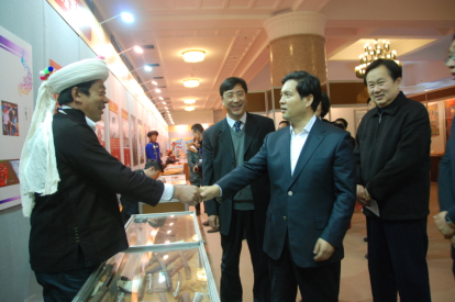 国家民委副主任丹珠昂奔看望云南非遗传承人段四兴(云南省非遗中心 杨建荣摄)