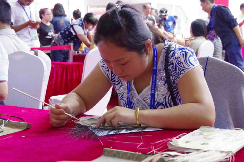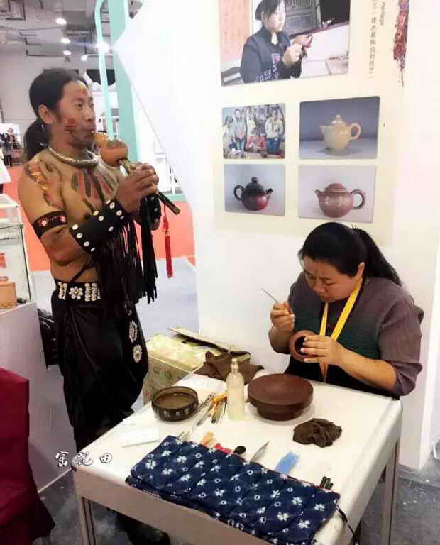 在博览会场第二层的中央是传统技艺展示赛场。每天上、下午举行泥面塑、草柳藤编、陶瓷手工成型、刺绣、竹编、剪纸、风筝年画比赛。我省的竹编、刺绣、陶瓷手工成型、剪纸项目的传承人,也进入赛场表演。值得一提的是,我省参赛的市级非遗项目—竹编(宜良县、绥江县)的6位传承人,以精湛娴熟的技艺在与全国的国家级非遗项目的pk中脱颖而出,宜良县的竹编项目代表性传承人李加云荣获金奖,绥江县的竹编项目代表性传承人袁朝秀获银奖,林尚田、王后培、林尚平分获铜奖、优秀奖。在陶瓷手工成型比赛中,我省建水紫陶烧制技艺项目代表性传承人黄木忠获得铜奖,彝族(撒尼)刺绣项目代表性传承人马琼芬获优秀奖。这是全国非遗传统技艺项目的首次比赛,参赛的传承人们都十分珍惜此次所获得奖项。
