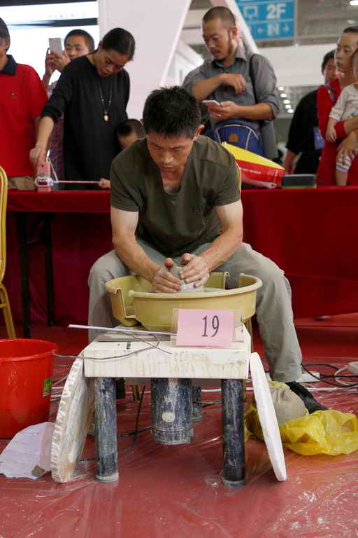 建水紫陶烧制技艺项目代表性传承人——黄木忠(陶瓷手工成型比赛中)