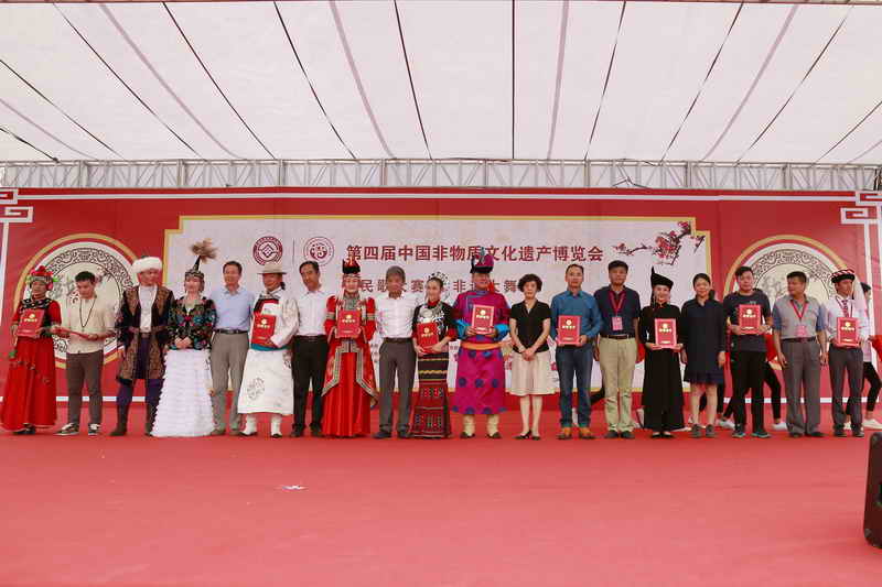 本届博览会设置民歌大赛,这是非遗传统音乐方面的首次大赛。比赛分为多人组合、独唱、重唱、民歌改编、院校组等多种形式,我省有16组选手进入复赛。经过评委会的复赛评审,全国评出53组选手进入决赛,我省有3组选手7人进入决赛。经过四天的激烈角逐,最终评选出一等奖4名、二等奖8名、三等奖12名。我省彝族民歌(南涧县)项目代表性传承人鲁国花获独唱三等奖,傣族民歌--相丽勐傣组合(龚晓后、杨相杏)和彝族四腔(玉溪市)组合(李成刚、李春、张丽萍、陈春发),获得重唱、对唱和多人组合优秀演唱奖。