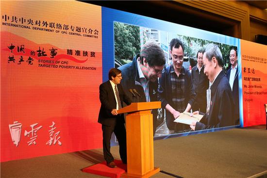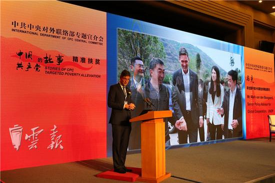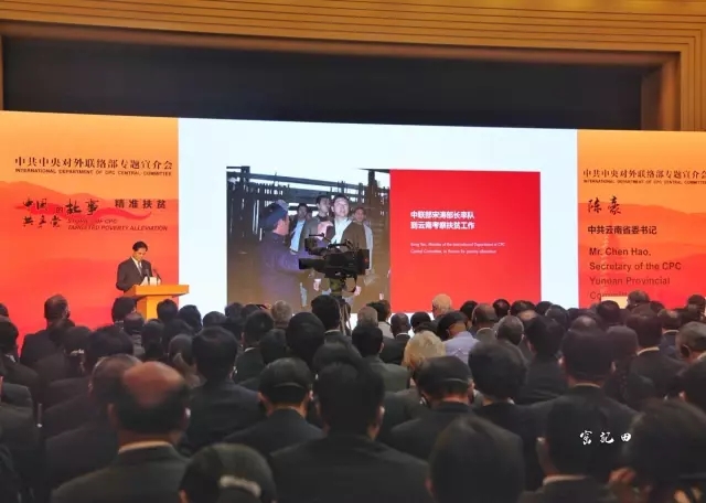 4月27日上午,中共中央对外联络部举行“中国共产党的故事”专题宣介会,以云南省委的实践为例,以“精准扶贫——不让一个民族掉队”为主题,向访华的外国政党政要以及驻华高级外交官、国际组织驻华代表宣介习近平总书记治国理政新理念新思想新战略,特别是扶贫开发重要战略思想在地方的生动实践,增进国际社会对中国共产党“精准扶贫”的认识与理解。