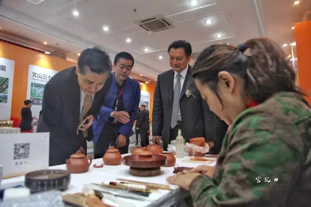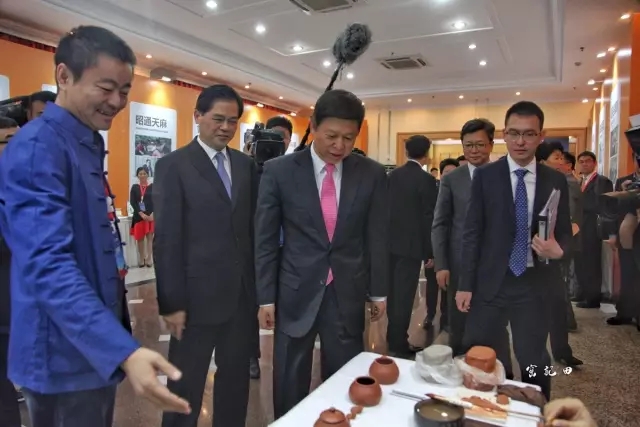 宋涛部长在观看非遗传承人田静的手工制壶技艺演示后说道:“这个很好,可以做国礼呀。”