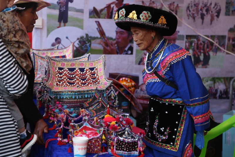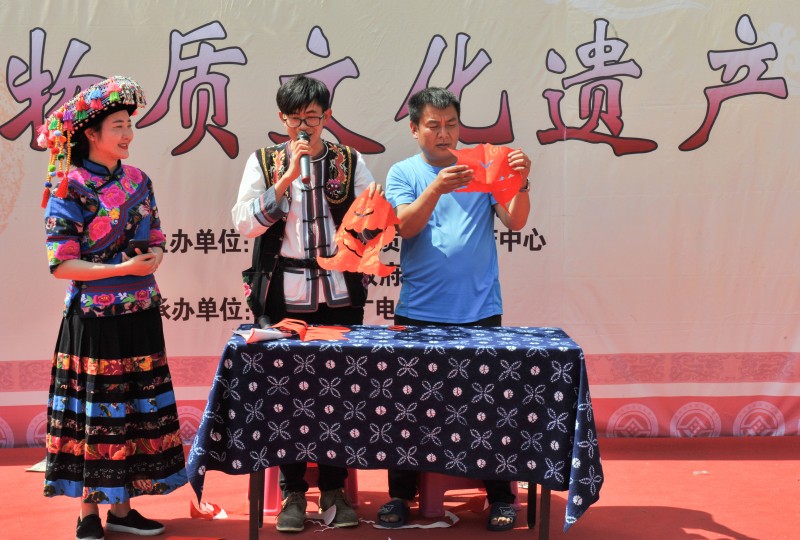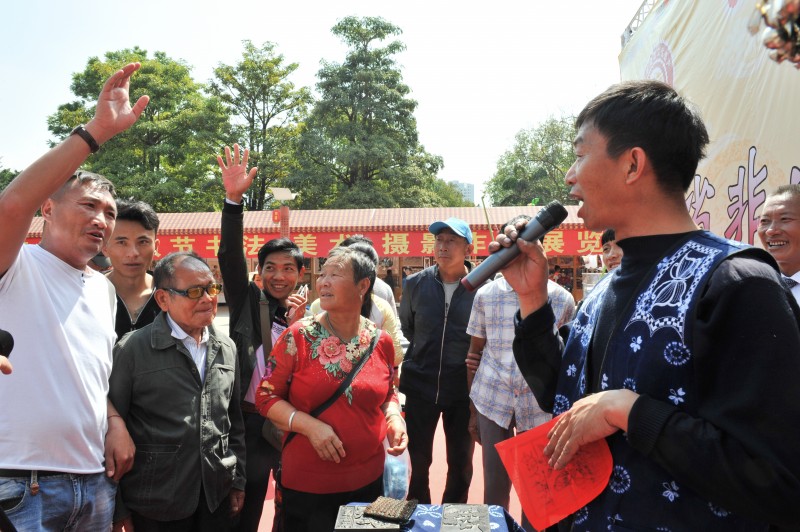展览活动期间,恰逢传统元宵佳节,整个展区吸引了县城及周边群众,白天看非遗展晚上看节目和烟火。为了吸引观众和活跃节日气氛,参展传承人结合自身特长,云南省非遗中心组织节目与观众展开互动。剪纸传承人高庆现场教会观众剪纸,还为热情观众赠送剪纸作品;小朋友对面塑很感兴趣,跟着传承人梁俊利学习制作,并开心地带走自己的作品;白族甲马纸传承人张瑞龙现场制作的多张甲马画,被观众一抢而空。一曲唢呐、一曲葫芦丝独奏,观众为传承人的精彩演出连连叫好。