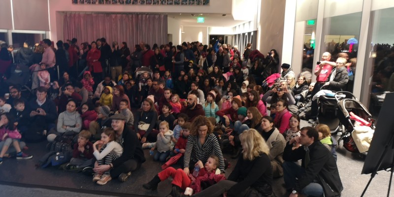 在肯尼迪表演艺术中心观看皮影戏的市民