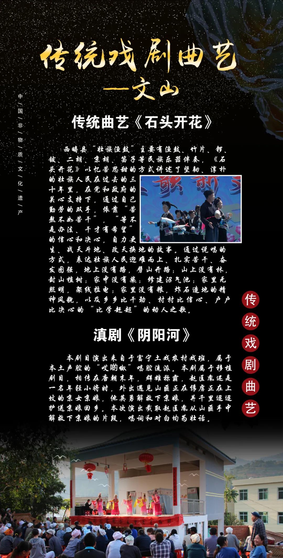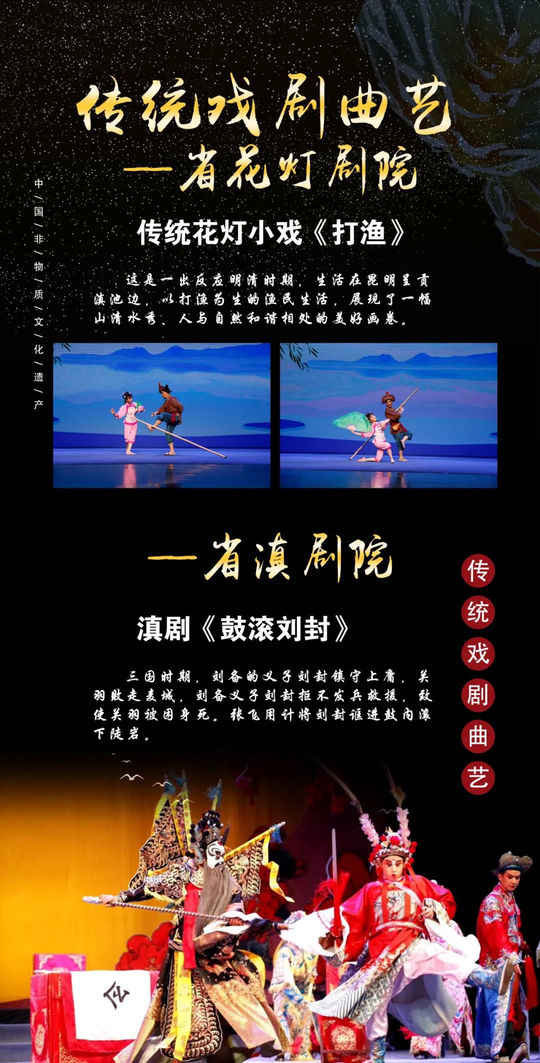 云南现有列入国家级、省级非物质文化遗产名录的传统戏剧、曲艺23项,其中,包括花灯戏、傣剧、傣族章哈、壮剧、滇剧、佤族清戏、彝剧、白剧、关索戏、皮影戏10个国家级项目;包括滇剧、花灯戏、端公戏、壮族渔鼓、白族吹吹腔、白族大本曲、杀戏、腾冲扬琴、莲花落、昭通唱书、大词戏、香童戏、车灯13个省级项目。本届汇演共有以上23个非遗项目,21个剧种、曲种共36个剧(节)目参演。这些剧种、曲种,作为传统文化的表现形式,具有鲜明的地域特色、民族特色,为当地群众所喜闻乐见,在民间世代相传。来自全省14个州(市)的非物质文化遗产代表性传承人、省级和州(市)院团、剧团及民间剧社演职人员700余人,将齐聚蒙自,同台竞技,展示各具特色的民间艺术瑰宝,展现云南戏剧曲艺的无穷魅力。