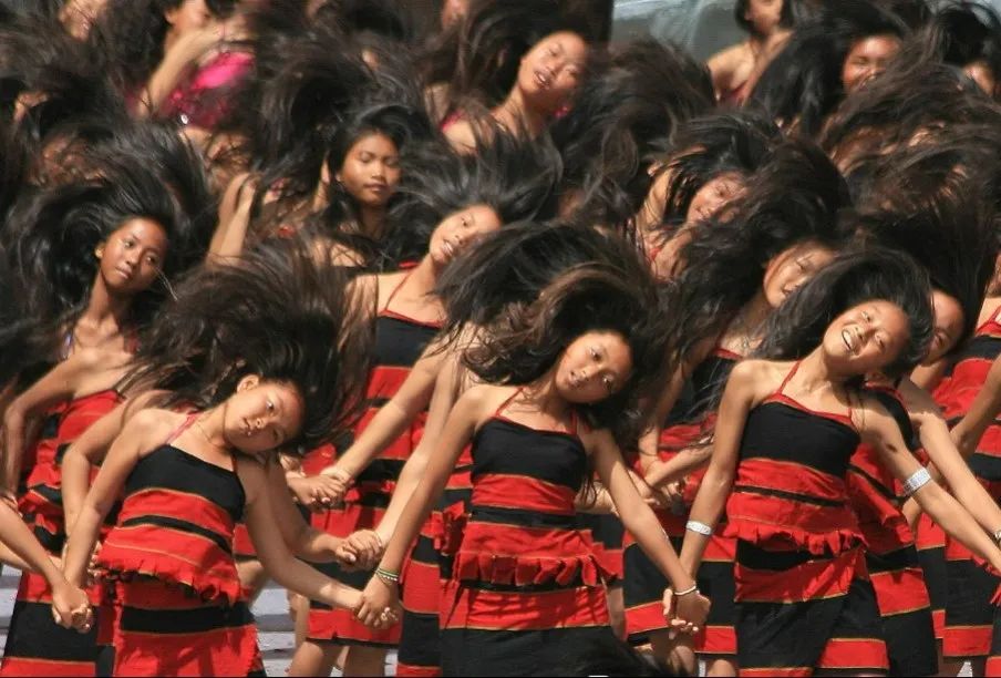 舞者们会把头发披散下来展示她们奔放狂野的魅力。《佤族甩发舞》因佤族姑娘们飞舞的黑发而名扬四海,著称于世,被艺术家们称为“会跳舞的黑头发”。舞者在歌声中舞动双臂,踩起脚,俯仰开阖,甩首顿足,以刚健快捷的脚步为拍,让秀发如云飘散起舞。秀发在空中时而似黑云流瀑飞溅,时而又如翻腾的巨浪,柔中有刚,潇洒健美,给人美的享受。