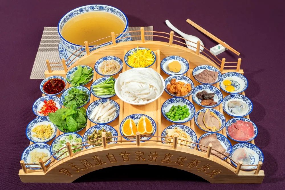 蒙自过桥米线是蒙自人民智慧的结晶,蒙自人的乡愁和骄傲。其制作和文化品鉴主要有米线榨制、汤料制作和佐菜配料三道工序。