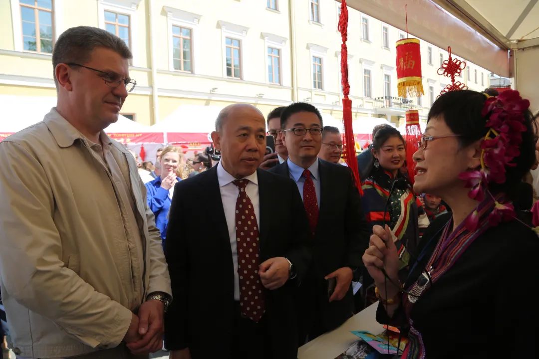 5月27日,谢小用大使出席在白俄罗斯首都明斯克市自由广场举办的“茶和天下”活动开幕式。明斯克市市长库哈列夫、白文化部副部长萨拉卡奇、经济部副部长阿布拉缅科、工业部副部长哈里顿奇克和白社会各界代表及市民、部分驻白使节、中资企业代表、中白两国学生等近三万人出席了活动。