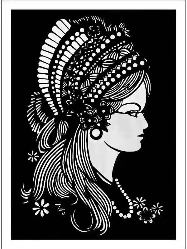 剪影作为剪纸艺术的特殊形式,作品多为人物轮廓形象、吉祥图案等。其特点贵在一个快字,妙在准确地表达事物,剪人物唯妙唯俏,栩栩如生,一气呵成从不修饰,许多作品有着深远的意境。