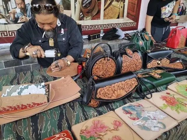 传统皮雕刻手工工艺历史悠久,最早可追溯到古代游牧民族。传统牛皮雕是一种富有浓郁民族特色的传统工艺,它通过民间皮雕艺人巧妙的构思用刻刀在牛皮上精雕细琢出图案的轮廓,经过特殊描绘、着色、层染、抛掐光、定形、半浮雕凹凸压制等一系列工艺、几十道工序纯手工制作完成。