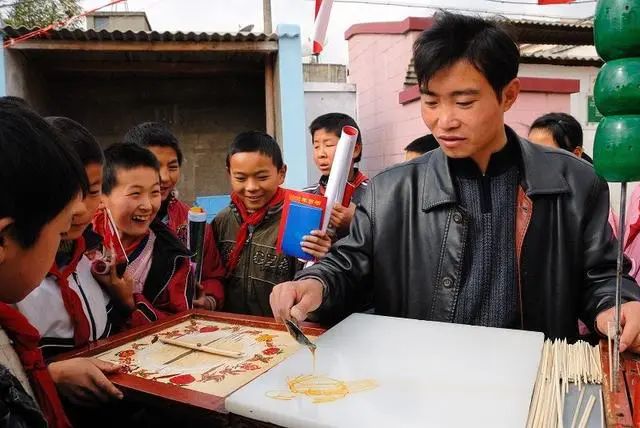 糖画,又称“糖影儿”“糖饼儿”“转糖”。是以糖为材料,以勺子为“笔”、糖稀为“墨”,各种生动的图案造型在艺人的手下跃然而出。这一民间技艺虽属小技,却历史悠久,源远流长。据考证,糖画大约形成于明代,距今约有500余年历史。
