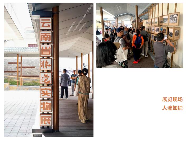 开展当天,共有天宝斋制墨技艺、传统合香制作技艺、昆明瓦猫、葫芦雕绘、锔瓷技艺等 20余项非物质文化遗产代表性项目亮相“5·18国际博物馆日”云南主会场活动,精彩的舞狮、酒鼓舞、花灯戏、纳西族热美蹉等展演节目吸引了众多观众驻足。50余名少年儿童在家长陪同下参加了当晚举办的“博物馆奇妙夜”研学活动,在观展的同时,亲身体验了安宁扎染、传统拓印、剪纸、剪影等非遗代表性项目。不少观众表示,此次展览不仅是一次视觉的美好盛宴,更是一次心灵的熏陶和文化的滋养。