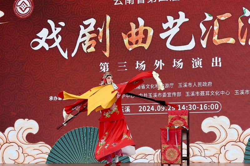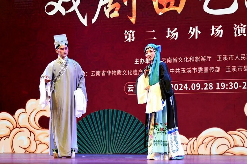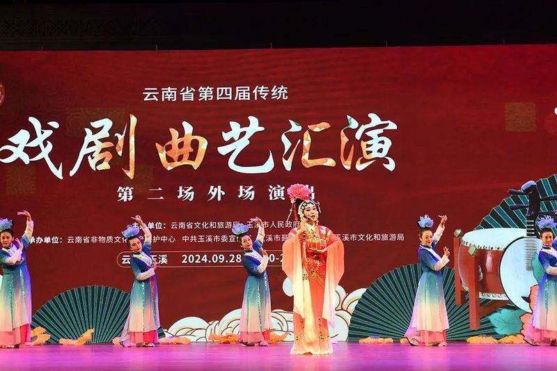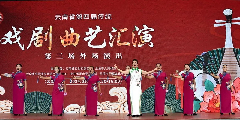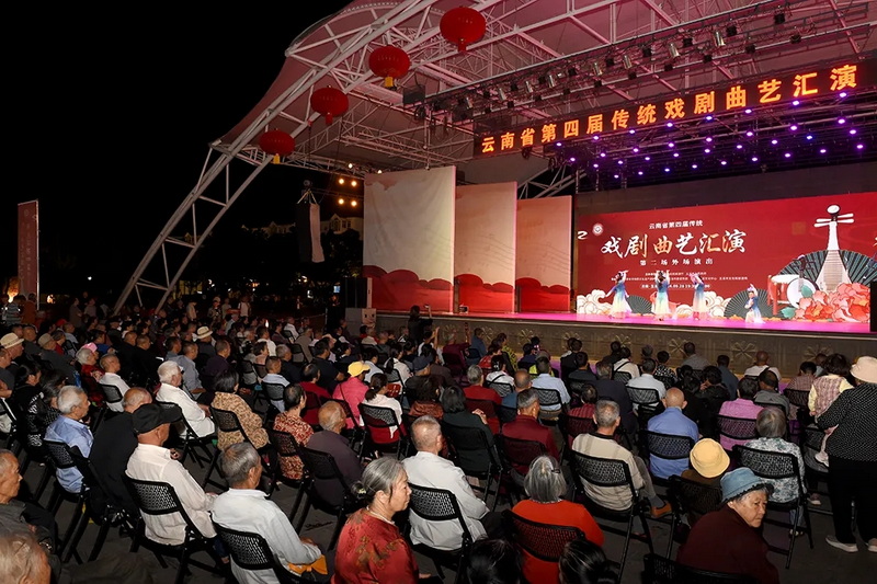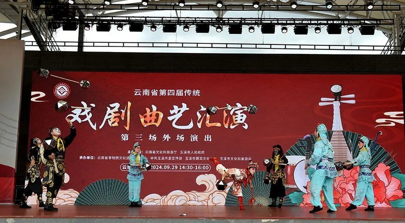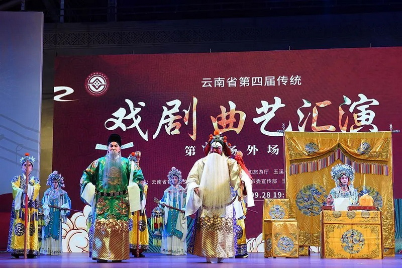 9月28日和29日,云南省第四届传统戏剧曲艺汇演第二场、第三场外场惠民演出在玉溪市聂耳文化广场举行。来自玉溪、昆明、保山、临沧、迪庆、德宏、昭通、文山、大理9个州市的非遗传承人、院(剧)团及民间剧社充分展现了云南传统戏剧曲艺发展成果薪火赓续、生机勃勃。