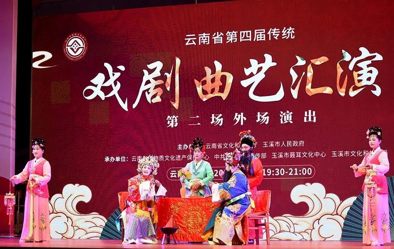 国家级非遗代表性项目花灯戏《刘成看菜》《兄弟》、佤族清戏《三孝记》选段《芦林相会》、滇剧《铁弓缘·待嫁》《哪吒闹海》选段,省级非遗代表性项目滇剧《顶本章》《芙蓉花仙》、评书《话说昆明》、大词戏《东窗围炉》、傣族木偶戏、昭通唱书《一日三朝》、壮族渔鼓《楞叨调》同台交流互鉴,为云南传统戏剧曲艺提供了一个绝佳的展示平台。