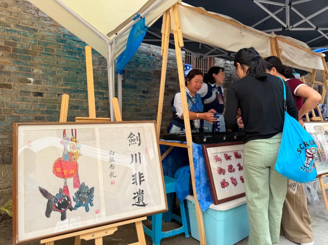 金秋九月,桂花飘香,一年一度的民族盛会——石宝山歌会在三弦和白曲的协奏中拉开帷幕。剑川古城内人流如织,一派热闹景象。剑川黑陶、建水紫陶、临翔陶器、潦浒陶器等陶类项目各有其韵。掐丝珐琅银器流光溢彩,腾冲竹编清雅,葫芦雕绘灵动,皮革雕刻精巧,白族扎染斑斓,这些非遗技艺在传承中创新,巧妙融入现代生活美学,让传统工艺制品焕发出实用与艺术交融的崭新生机。观众还可亲手体验腾冲檊香工艺,在氤氲香气中感受来自滇西山林的自然馈赠。非遗美食的馥郁芬芳激活了观众的味觉记忆:奶渣饼的酥香、甜白酒的清甜、鱼干巴的咸鲜、豌豆粉的爽滑、火腿的醇厚、火腿月饼的酥香层层交织,再佐以普洱茶的温润回甘与咖啡的馥郁浓香,香、甜、鲜、美交织,令味蕾在云端起舞。麦芽糖的绵密拉丝、苏裹梅的酸甜沁心,更如时光机般将人们带回童年的巷陌街角。