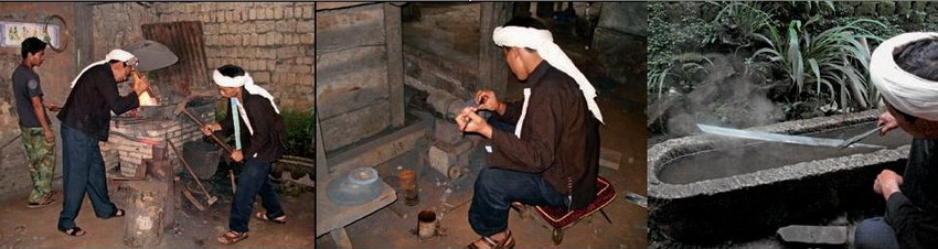 阿昌刀也称户撒刀,因出自户撒乡而得名,与新疆维吾尔族的英吉萨刀、宁夏裕固族的保安刀并称为全国三大民族刀具。阿昌族先民很早就掌握了锻制和铸造铁器的要领,明代以来更吸收了汉族先进的生产技术,形成了独具特色的户撒刀工艺。《新纂云南通志》卷一四二载:“户撒、腊撒两长官司、地所制之刀,铁质最为精炼,与木邦刀无二。”