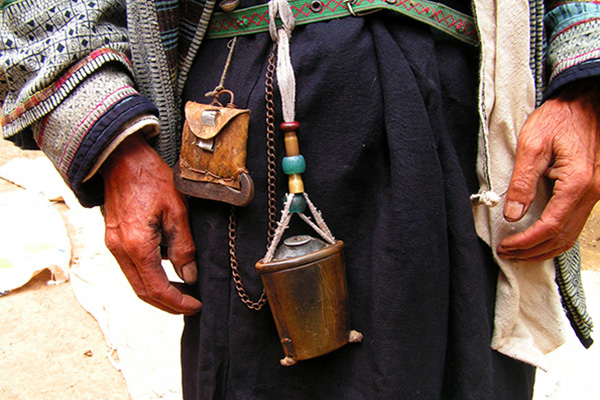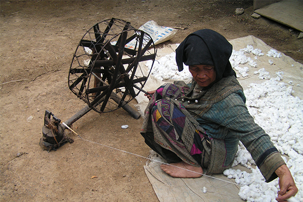5、服饰:白倮人男、女服饰都非常具有代表性,民族风格浓郁,图案丰富,工艺精湛。有一套古老而完整的纺织工艺体系,从种棉、纺线、织布、蜡染、刺绣到缝纫,整套工艺均使用古老的传统技术,脱棉机、纺车、织机等完整齐全。