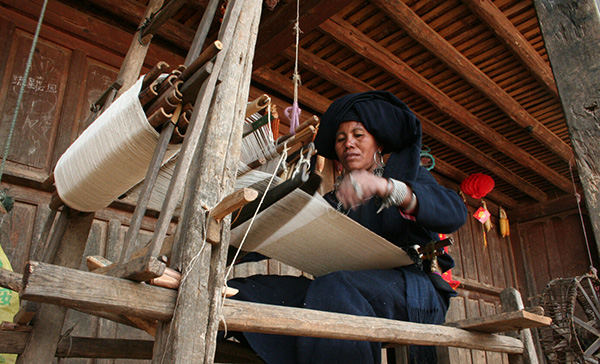 鲁明秀,女,布朗族,1962年3月生,双江自治县邦丙乡邦丙村一组人。鲁明秀自幼观看母亲纺织、制衣,在布朗族纺织文化“不会纺织的女人不是好女人,不会纺织的女人找不到好男人”等观念的影响下,11岁时正式向母亲杨小月学艺,经过37年的勤奋努力和刻苦钻研,掌握了布朗族手工纺织的全套技艺,是邦丙乡有名的布朗族纺织能手。