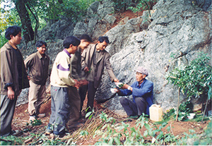 杨明福,男,彝族(撒尼支系),1942年生,现年68岁,云南省文山壮族苗族自治州丘北县儿道哨彝族乡豹子坡村人,是当地群众公认的本民族传统文化活动的代表人物。