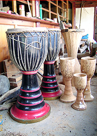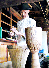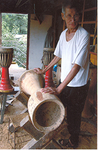 除了制作象脚鼓外,周晋国还会制造生产生活用具,如铁耙、踩耙、鱼笼等,他还是一位出色的安章(即巫师),主持本村佛寺的各种祭祀活动,帮助村民选择起房盖屋、讨亲嫁女的日子。