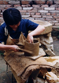 从小看着母亲用她灵巧的双手,随心所欲地烧制出形制多样的生活用具,罗明香耳濡目染,后来在母亲的言传身教下,16岁便开始独立制作陶器。经过20多年的实践,制陶技艺不断提高,品种也不断增加,并总结出了一套独特的制陶方法。她制作的陶器主要有风炉、火盆、花盆、土锅、灶心、蒸笼、温酒炉、温酒罐等。其工艺流程为取土、拌泥、舂泥、成型、刮平、光滑、凉干,然后放入窑中点火烧制。罗明香改进了传统的烧窑,将消耗大量燃料又占地较多的露天窑,改成节约燃料的封闭式窑,一方面提高了容积量,减少燃料,减少占地面积,另一方面提高和保证了窑温,使烧制的陶器质量更好。