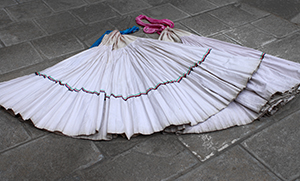 卓玛的藏装制作在选料等环节上严把质量,以诚信取胜;在色彩、样式的选择上突出本民族特征,因而形成了自己的个性风格。她制作的男式服装有金边帽、白茧绸衬衫、长袖短袖锦缎上衣、白茧绸宽筒裤;女式服装有白茧绸衬衫、锦缎外衣、坎肩、百褶裙。卓玛设计的奔子栏藏装更是别具特色:男子头戴金边帽,上身内穿一件白茧绸长袖衣、下身穿白茧绸宽筒裤,外穿咖啡色楚巴,足蹬长统藏靴;女式服装则讲究色彩搭配,尽显高贵典雅气质,一般为上身着白茧绸衬衫,再穿锦缎短袖外衣,外罩一件氆氇制作的坎肩,无领,以银环挂扣于领口,下身着曳地百褶裙,腰间缠丝绸及毛织花带。