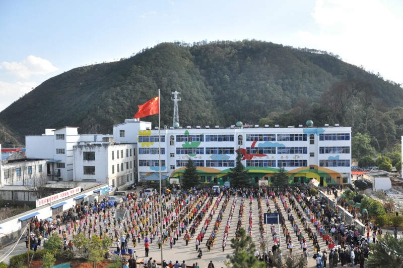 阿细跳月进课堂,师生活动喜洋洋。第二套“阿细童谣”大课间舞蹈,将传统的阿细跳月元素融入课间操活动当中,学生们伴随欢快的乐声跳起传统的彝族舞蹈,男生手握三弦琴,舞步奔放,女生轻和旋律,舞姿轻盈。阿细跳月进校园活动,丰富了校园文化生活,提高了学生运动兴趣,增强了身体协调性,加深了青少年对非物质文化遗产的认识。