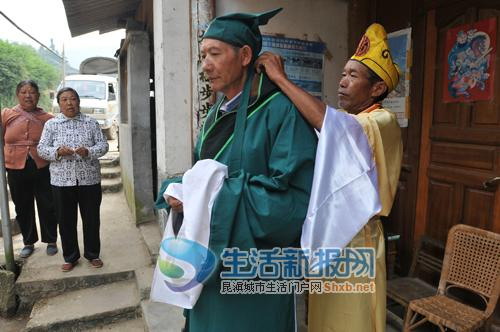 穿上和尚装,李家显的徒弟唱起了佤族清戏