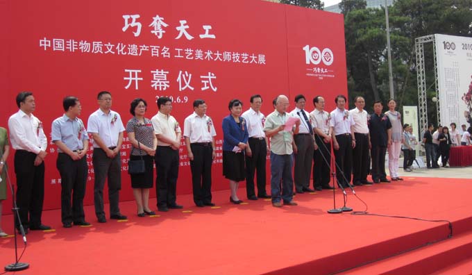 活动开幕仪式于6月9日早晨10:00在北京展览馆举行,文化部和国家民委的相关领导同志出席并致辞,工艺美术大师代表也发表了热情洋溢的演讲,开幕式在如潮般参观者的掌声中顺利结束。由此本次活动正式拉开了帷幕。