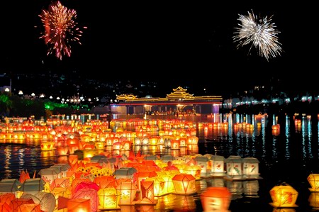每年的河灯歌节都吸引众多游人