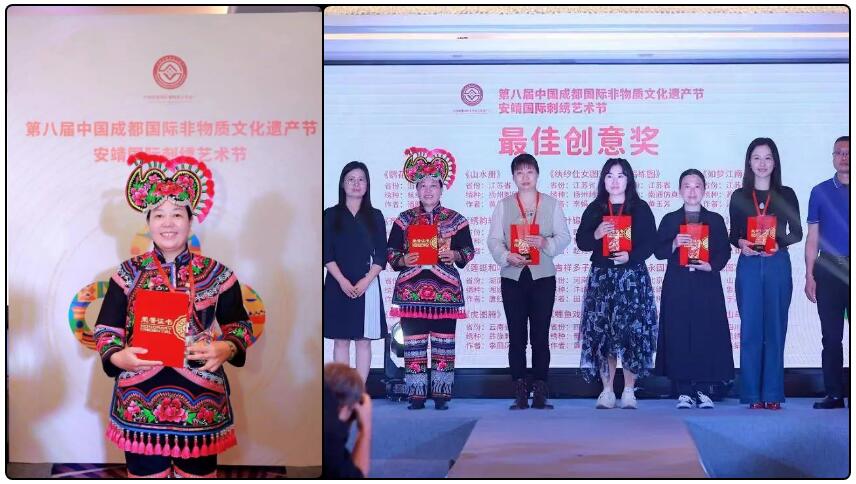 永仁县县级非遗代表性传承人李丽凤携彝族刺绣作品“虎图腾”参加非遗节第二届“金针杯”中国传统工艺——刺绣大赛决赛,获最佳创意奖。