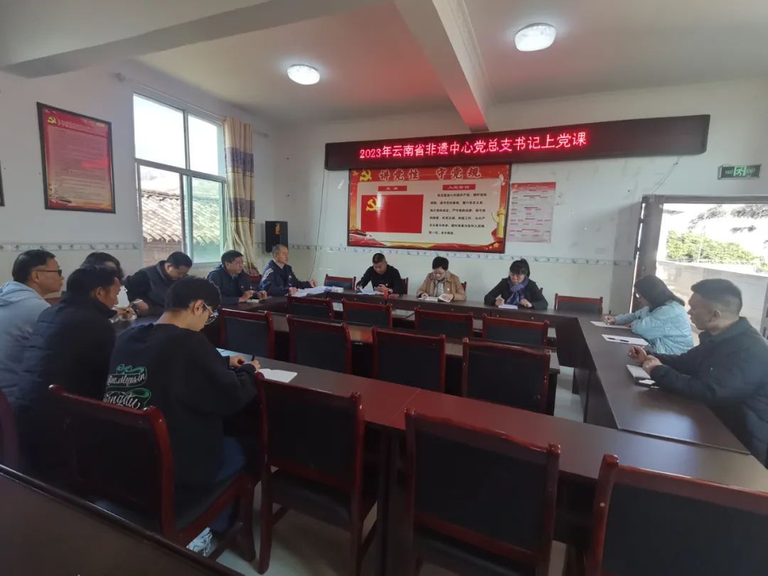 随后,调研组与驻村工作队员、卜甲村村民代表、丽江及永胜县非遗系统工作人员开展了乡村振兴工作座谈会。会上,省非遗中心主任王静首先领学了《中国共产党第二十次全国代表大会关于〈中国共产党章程(修正案)〉的决议》和《中共中央关于〈中国共产党章程(修正案)〉的说明》,丽江非遗中心主任朱远灵在发言中谈到:“我们要学深悟透,用党章来规范自己,做中华优秀传统文化的宣传员”;永胜县文化馆馆长梁朝臣表示:“我们要不断加强对党章的学习,让学习成果入脑入心”;卜甲村党总支书记王朝军表态:“我们村党总支部要发挥基层党组织的战斗堡垒作用,带领全村共同走上富裕之路!”;村委会副主任周李英对驻村工作队员参与耕地保护、走村入户宣传政策、调解纠纷,并建立了翔实的民情档案、工作日志及帮扶计划等一系列乡村振兴工作表示高度评价;中心驻村队员殷志勇表示:在驻村期间将严格按照“五清”的要求,真驻实干,认真履行职责,发扬迎难而上艰苦奋斗的精神,积极想办法、出主意,攻坚克难,帮助当地群众早日致富。会上,调研组还就当地乡村振兴发展瓶颈和面临的实际困难积极建言献策,就如何把非遗资源优质转化成文化产业优势提出了多条切实可行措施。