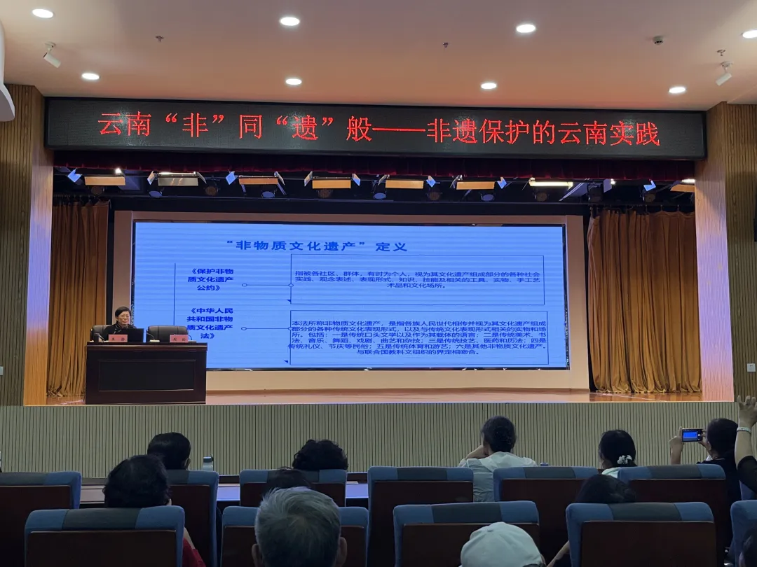 9月23日下午,主题为“云南‘非’同‘遗’般——非遗保护的云南实践”的第十四期云岭银教课堂开课,云南省非物质文化遗产保护中心主任王静受邀赴云南老年大学授课。本次活动旨在通过普及非遗知识,向广大老年朋友展示云南非遗保护的最新成果和未来发展方向,增强老年人对传统文化的认同感与自豪感。